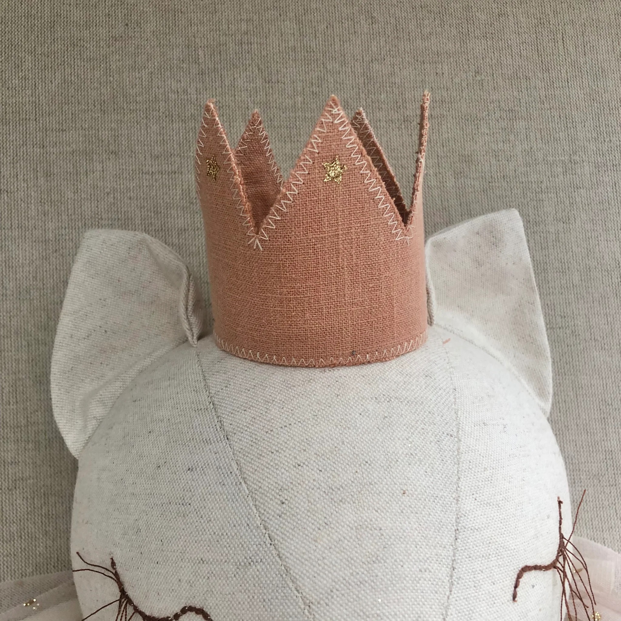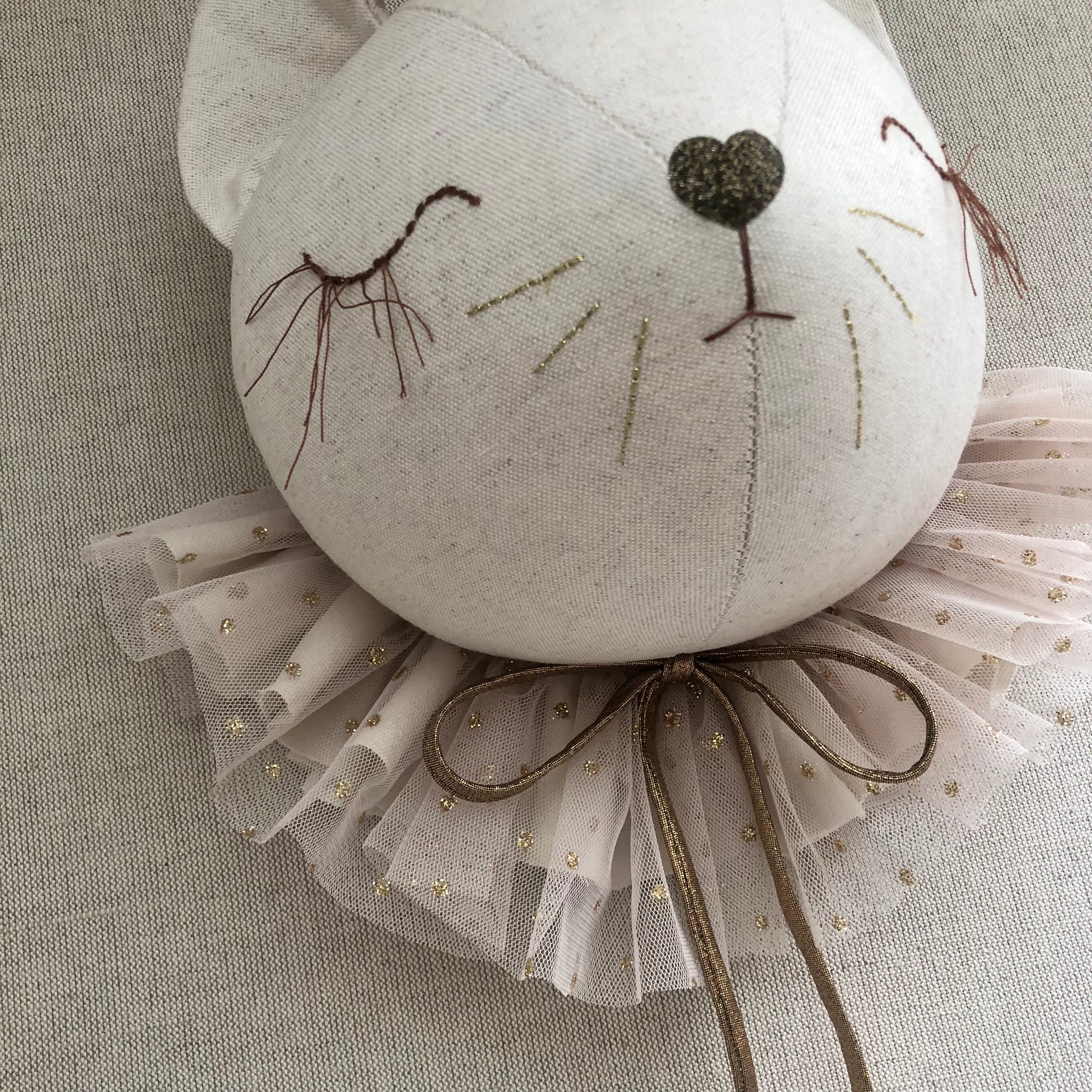 Die Katze ist aus Baumwolle und Leinen gefertigt und mit wunderschönen aufwendigen Details wie einer Krone verziert.
