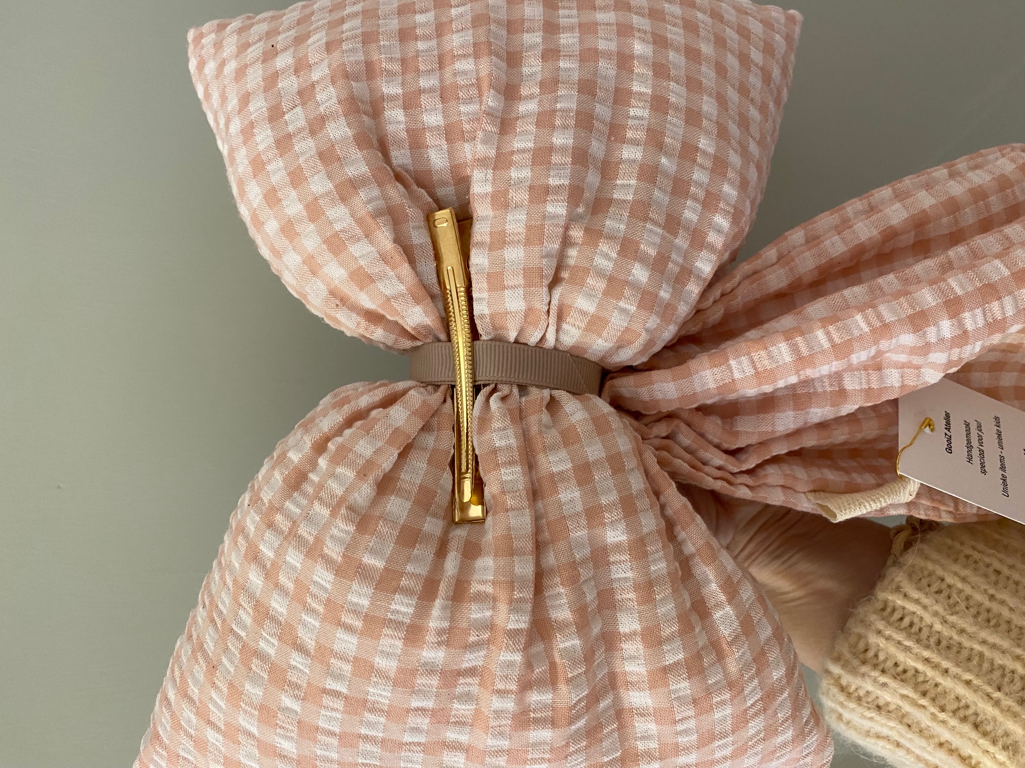 Wunderschöne XL Schleife als vielseitiges Dekorationselement. Sie sieht an der Wand toll aus, an einen Baldachin/ Betthimmel befestigt über der Wippe, dem Kinderbett...