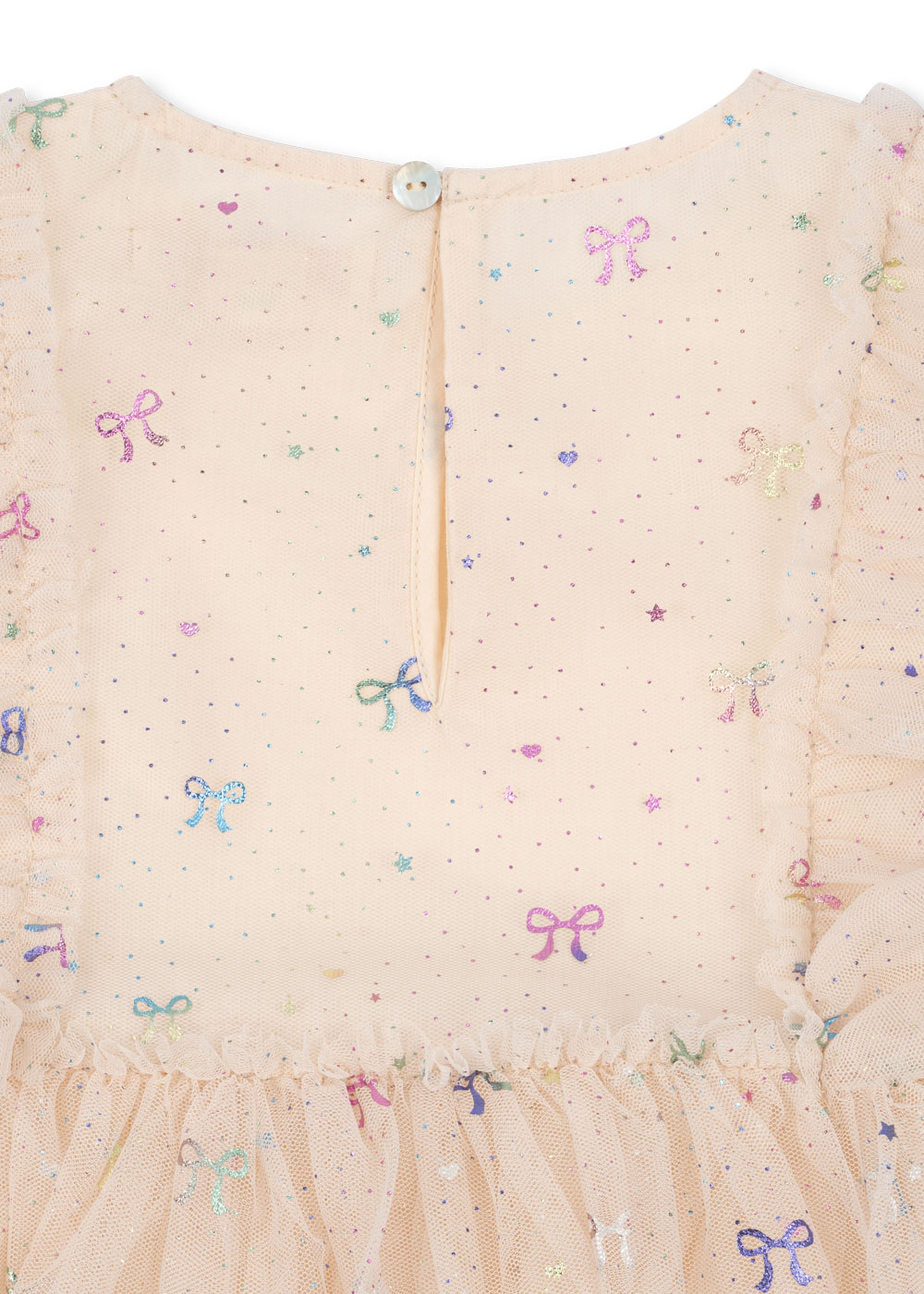 Mit Rüschenärmeln, einem glitzernden Kirsch-Print und einem voluminösen Rock - dieses Kleidungsstück verleiht dem Alltag etwas Magie. Mit einem Futter aus weicher Baumwolle für bequeme Tragbarkeit.