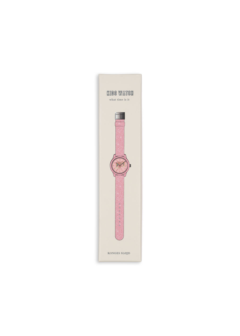 Mit dieser Kinderarmbanduhr ist es ganz einfach, die Uhrzeit abzulesen. Die Stunden und 5-Minuten-Schritte sind markiert, der Rest ist mit Punkten gekennzeichnet. Ausgestattet mit einem Dreizeigerwerk, einem weichen Glitzer-Stoffarmband und einem verstellbaren Stahlverschluss.