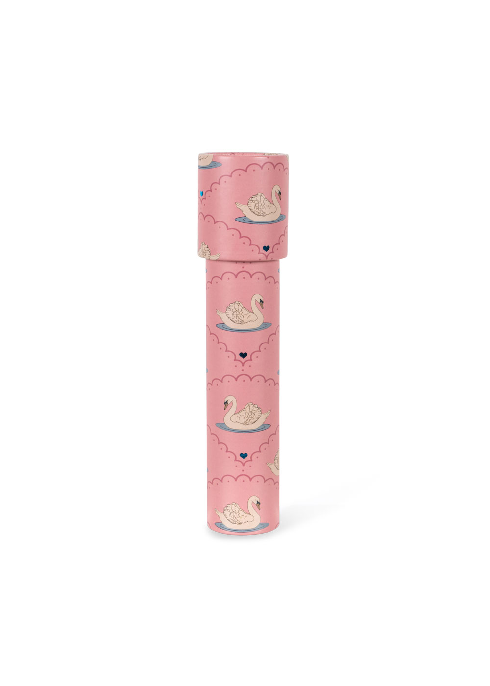 Wunderschönes Kaleidoskop mit bunten Perlen im Inneren. Das Kind kann hinein schauen und durch die Reflexion der Spiegel verschiedene Muster erkennen, die sich durch das Drehen immer wieder verändern.
