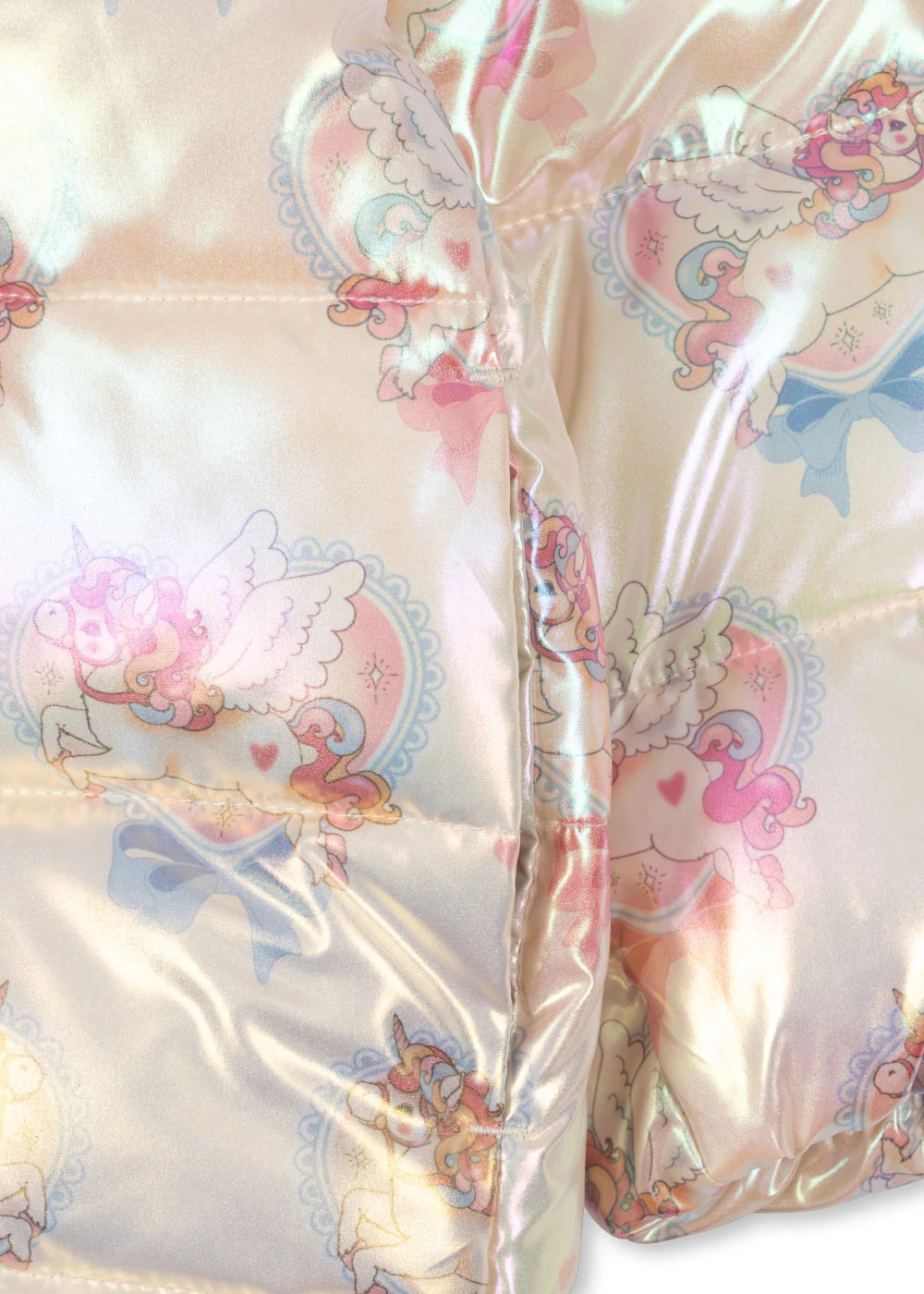 Warme Pufferjacke mit einer gepolsterten Kapuze und warmer Unifi Repreve® Polsterung aus 100 % recycelten Hochleistungsfasern. Diese Art der Polsterung ist ideal für Oberbekleidung für Kinder, die einen flexiblen Wetterschutz benötigen, der sich nicht zu schwer oder sperrig anfühlt.