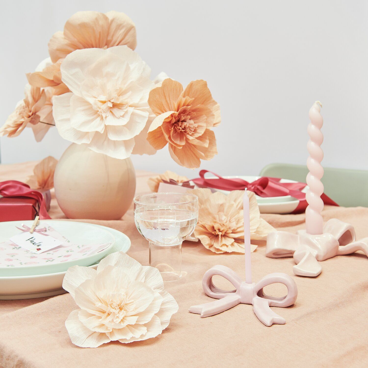 Der Wohnbereich erhält dank dieser dekorativen Schleife als Kerzenhalter eine zauberhafte Note! Das stilvolle Schleifen-Design aus Keramik sorgt für einen charmanten, modernen Look und bietet Kerzen mit einem Durchmesser von 7mm einen stabilen Halt. Ob auf dem Tisch, der Fensterbank oder im Eingangsbereich – dieser Kerzenhalter wird schnell zum Blickfang in jedem Zuhause. Das Schleifendesign verleiht dem Raum eine festliche, aber schlichte Atmosphäre, die sowohl zu klassischen als auch modernen Einrichtungsstilen passt.