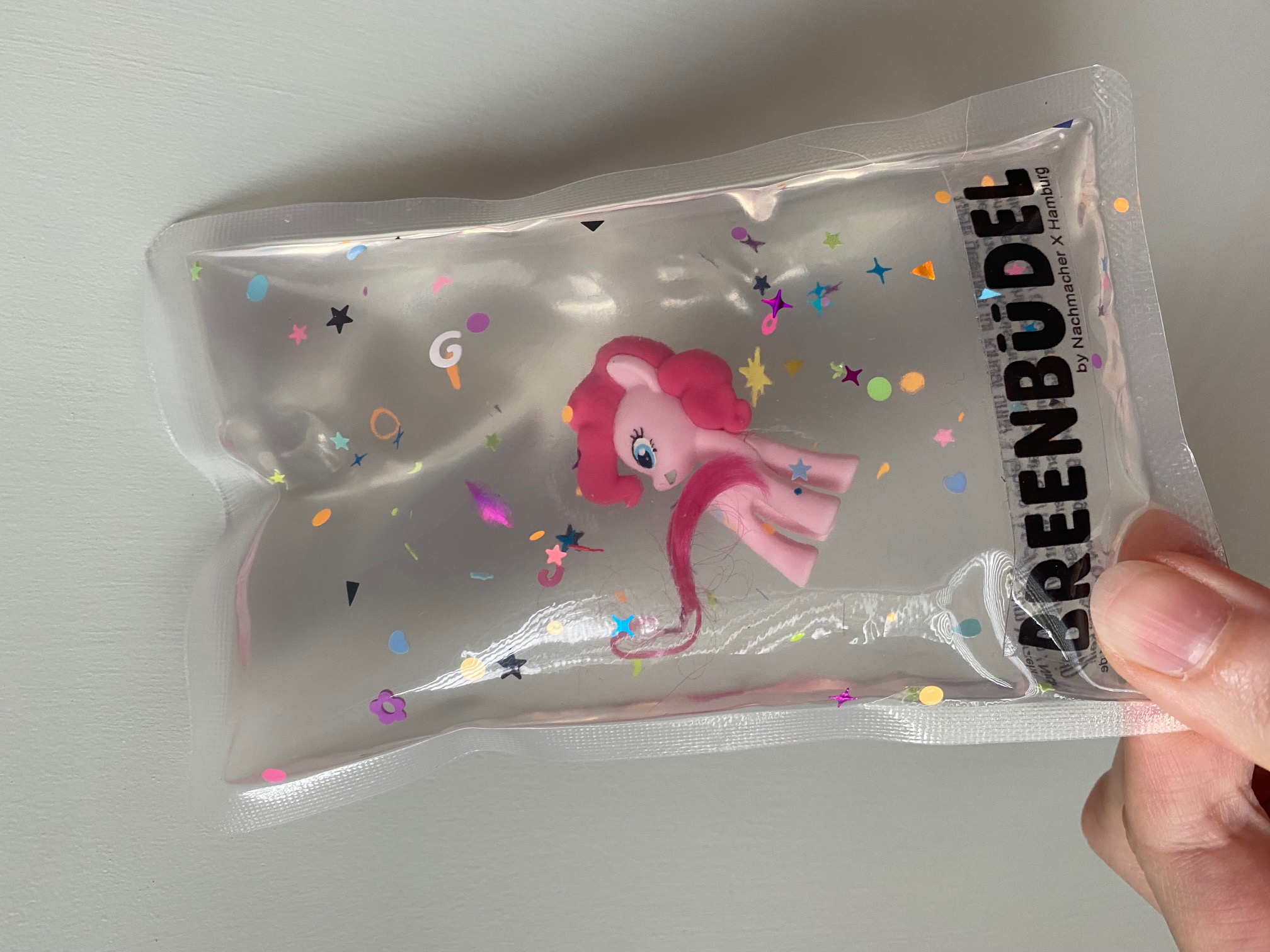 - Breenbüdel bestehen aus einer lebensmittelechten Folie, Glitzerpartikeln, wiederverwerteten Spielzeugen und einer glykolfreien, kompostierbaren Kühlfüllung