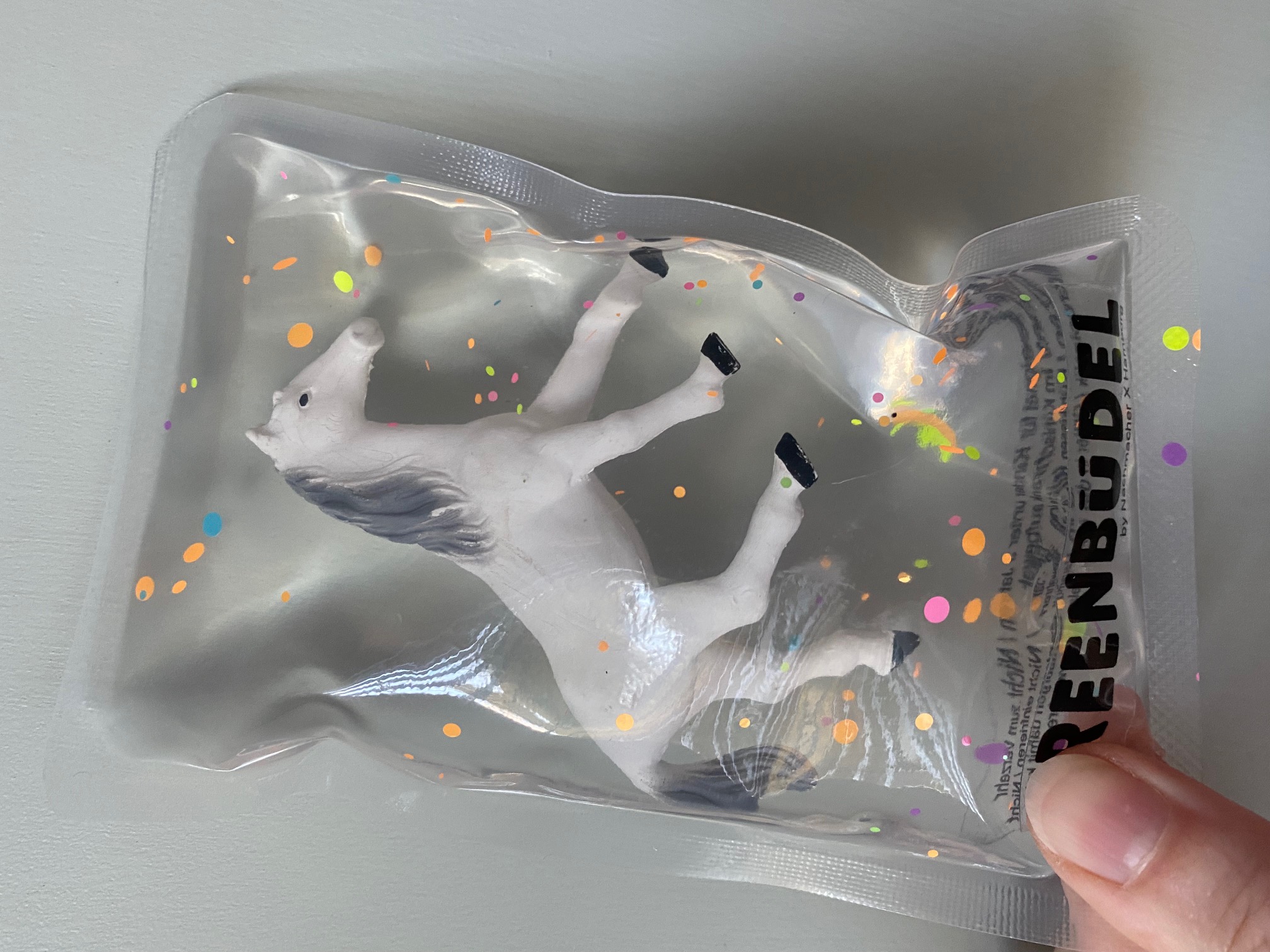 - Breenbüdel bestehen aus einer lebensmittelechten Folie, Glitzerpartikeln, wiederverwerteten Spielzeugen und einer glykolfreien, kompostierbaren Kühlfüllung