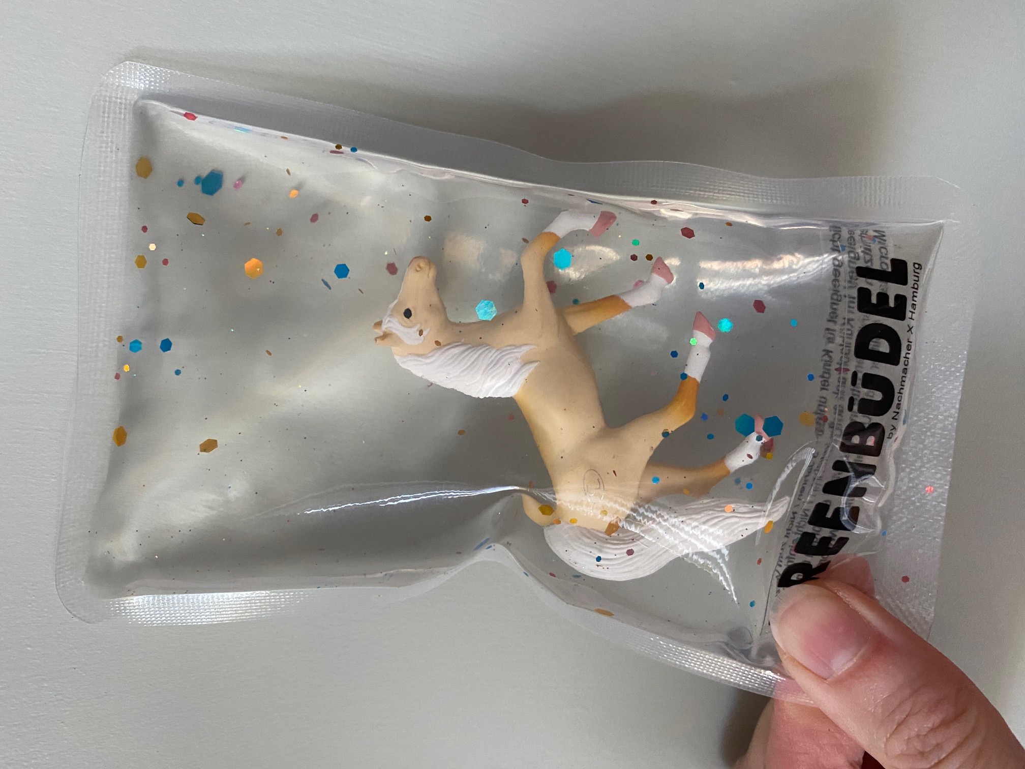 - Breenbüdel bestehen aus einer lebensmittelechten Folie, Glitzerpartikeln, wiederverwerteten Spielzeugen und einer glykolfreien, kompostierbaren Kühlfüllung