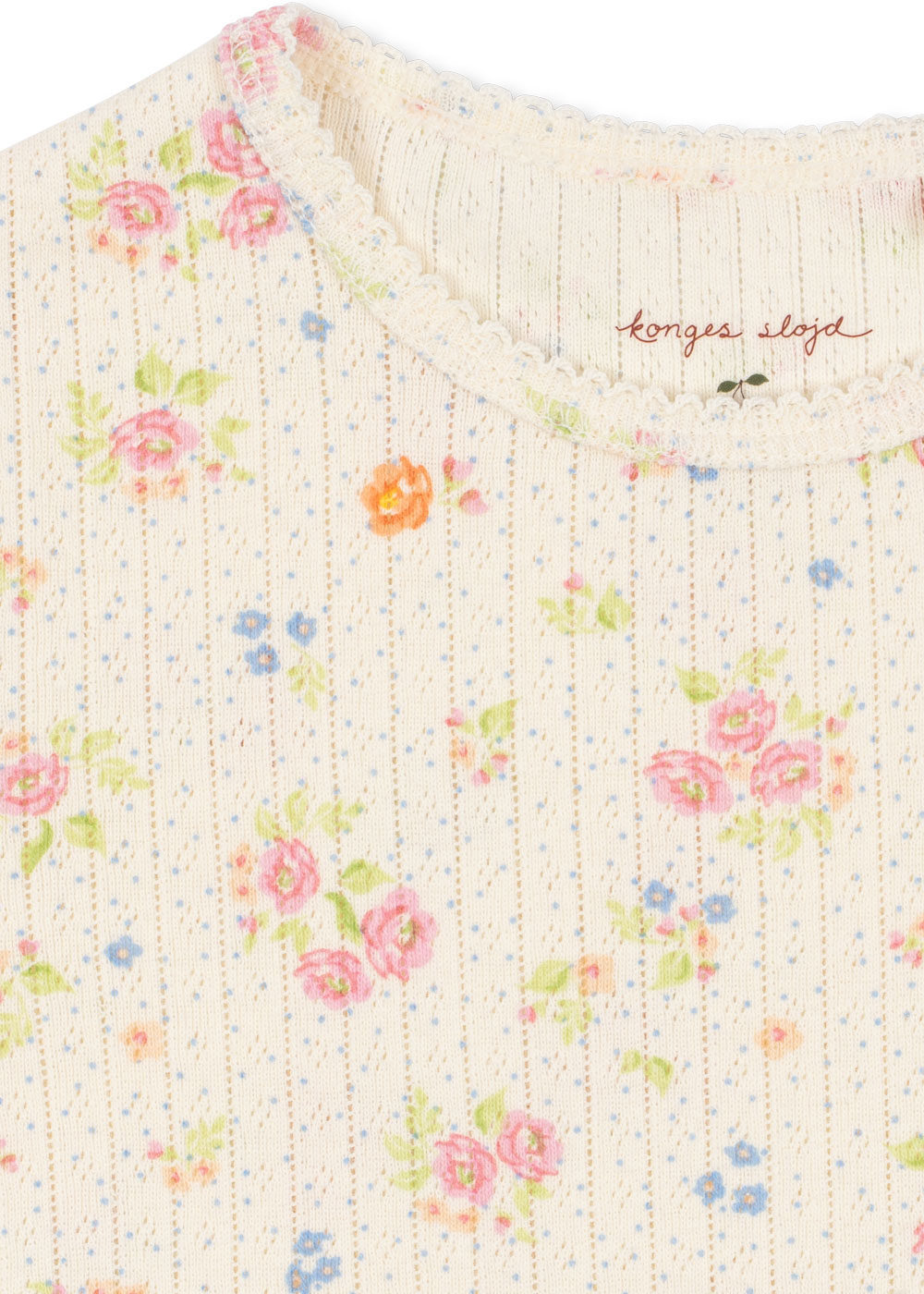 Weiches, einfaches T-Shirt aus 100% Bio-Baumwolle mit einem dekorativen Pointelle-Muster und dekorativem Picot-Saum.