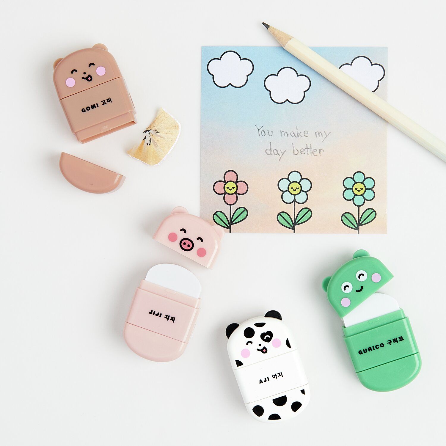 Das Radiergummi mit integriertem Anspitzer in Hundeform verbindet zwei nützliche Funktionen in einem handlichen Zubehör. Der Radierer ist mit einer Schutzkappe ausgestattet, während der Anspitzer eine Auffangkappe besitzt, die Späne sicher aufnimmt. Durch die Eignung für runde, dreieckige und sechseckige Stifte lässt sich das Kombi-Tool vielseitig im Schul- oder Kreativalltag verwenden.