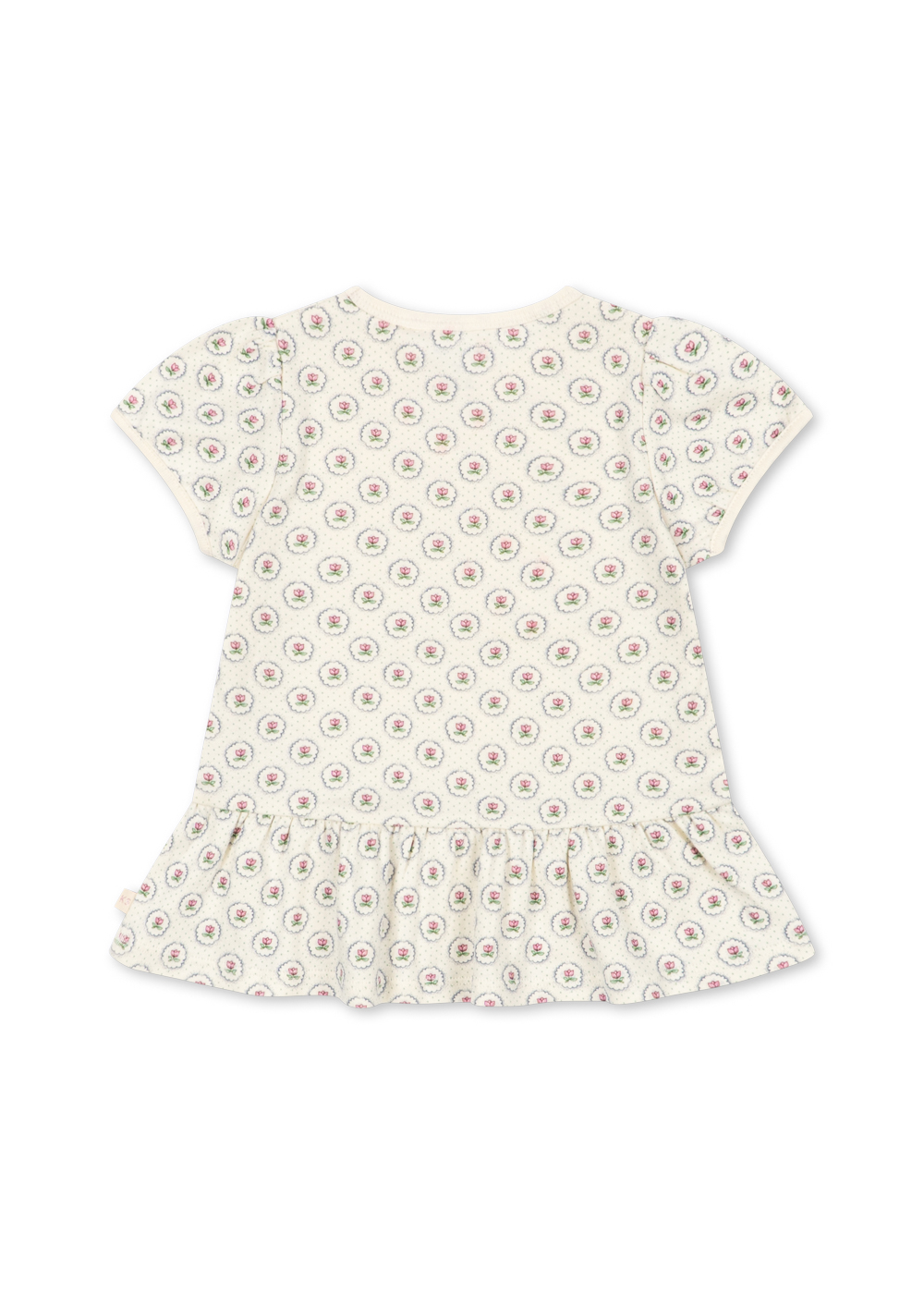 Süßes T-Shirt aus weicher Bio-Baumwolle mit kurzen Ärmeln und einen dekorativen Puff-Effekt an den Schultern. Mit einer Peplum-Silhouette. Hergestellt aus 100 % Bio-Baumwolle.